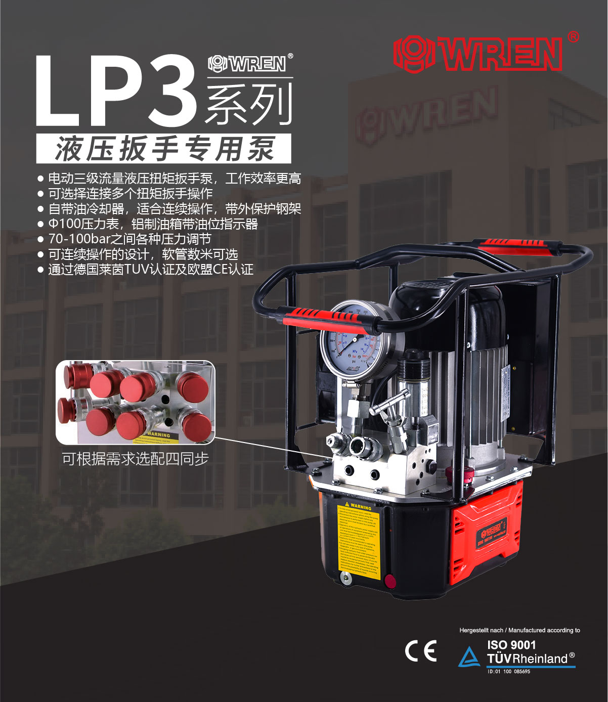 液壓扳手專用泵作為液壓扳手的動力源,是必不可少的,下面介紹一款LP3液壓扳手泵: