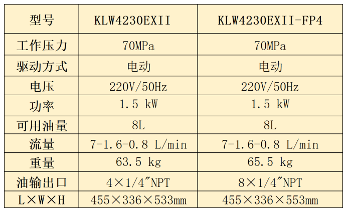 雷恩KLW4230EXII系列液壓扭矩扳手智能防爆泵,電動三級流量泵,防爆等級EXDⅡBT4,防護等級IP55,通過了防爆認證;自帶油冷卻器,運行時高效散熱,適合連續(xù)操作,帶外保護鋼架。