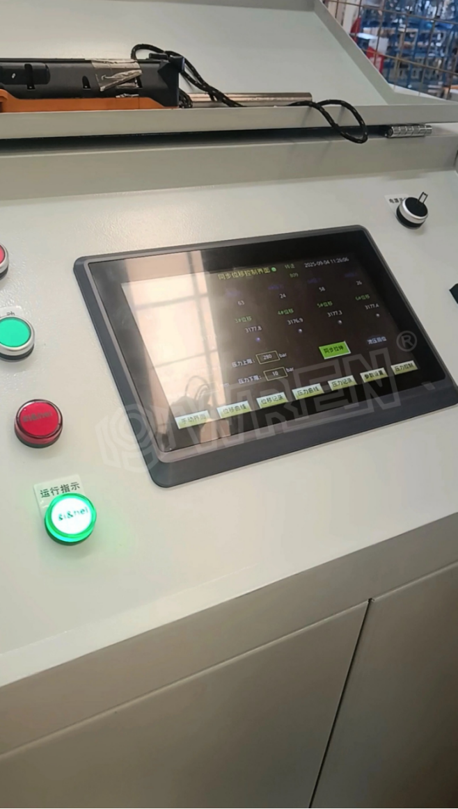 針對(duì)這一需求,雷恩工程師結(jié)合客戶設(shè)備的螺栓規(guī)格、法蘭尺寸等參數(shù),量身定制了一套同步拉伸裝置—— 整套系統(tǒng)由 1 臺(tái)智能控制柜、18 臺(tái)液壓螺栓拉伸器及配套液壓油管等部件構(gòu)成。這套裝置的核心優(yōu)勢(shì)在于:18 臺(tái)拉伸器可同時(shí)對(duì) 18 個(gè)螺栓施加拉力,實(shí)現(xiàn)“同步受力、同步緊固”,避免法蘭面變形;同時(shí),所有拉伸數(shù)據(jù)(如拉伸力、壓力、時(shí)間)均可在控制柜顯示屏上實(shí)時(shí)顯示,便于操作人員監(jiān)控與記錄,完全契合客戶對(duì)“高精度、高效率、可追溯”的需求。