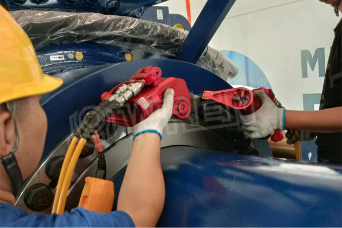 4.  一致性高:配合同步液壓系統(tǒng),可同時(shí)使用多個(gè)扳手,確保在一個(gè)法蘭上的所有螺栓受力均勻一致,這是手動(dòng)工具無法實(shí)現(xiàn)的。