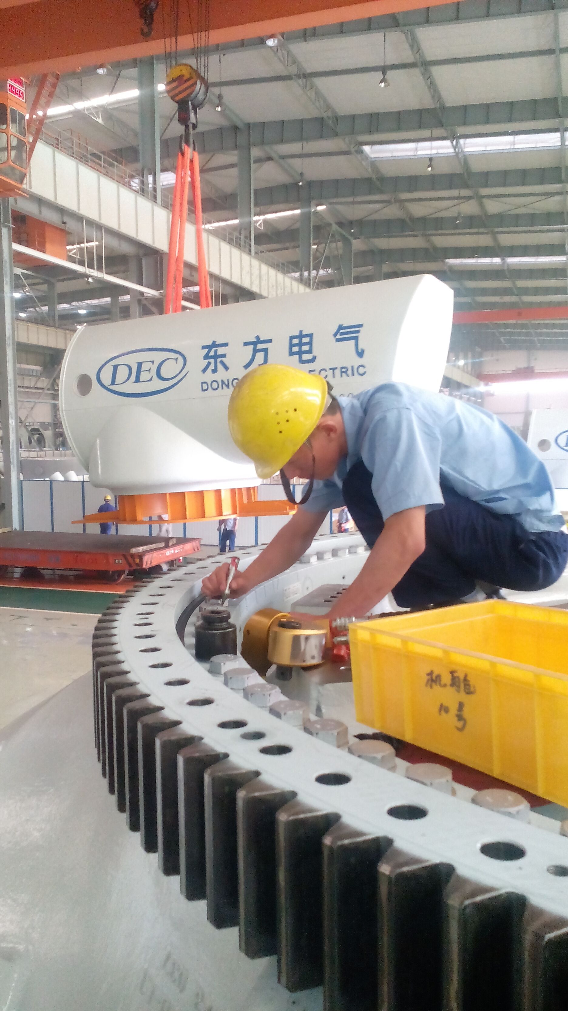 國內某風電企業(yè)在漲緊套工位螺栓擰緊時,不同機型的最大扭矩需求為1900 n.m ,精度要求±5% 。正常生產(chǎn)一臺風機,使用一臺液壓扳手來鎖緊,每天需連續(xù)工作12小時以上。大扭矩又由于空間的限制干涉,很多品牌的動力工具無法很好的解決此問題。