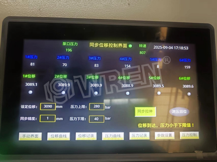 針對(duì)這一需求,雷恩工程師結(jié)合客戶設(shè)備的螺栓規(guī)格、法蘭尺寸等參數(shù),量身定制了一套同步拉伸裝置—— 整套系統(tǒng)由 1 臺(tái)智能控制柜、18 臺(tái)液壓螺栓拉伸器及配套液壓油管等部件構(gòu)成。這套裝置的核心優(yōu)勢(shì)在于:18 臺(tái)拉伸器可同時(shí)對(duì) 18 個(gè)螺栓施加拉力,實(shí)現(xiàn)“同步受力、同步緊固”,避免法蘭面變形;同時(shí),所有拉伸數(shù)據(jù)(如拉伸力、壓力、時(shí)間)均可在控制柜顯示屏上實(shí)時(shí)顯示,便于操作人員監(jiān)控與記錄,完全契合客戶對(duì)“高精度、高效率、可追溯”的需求。
